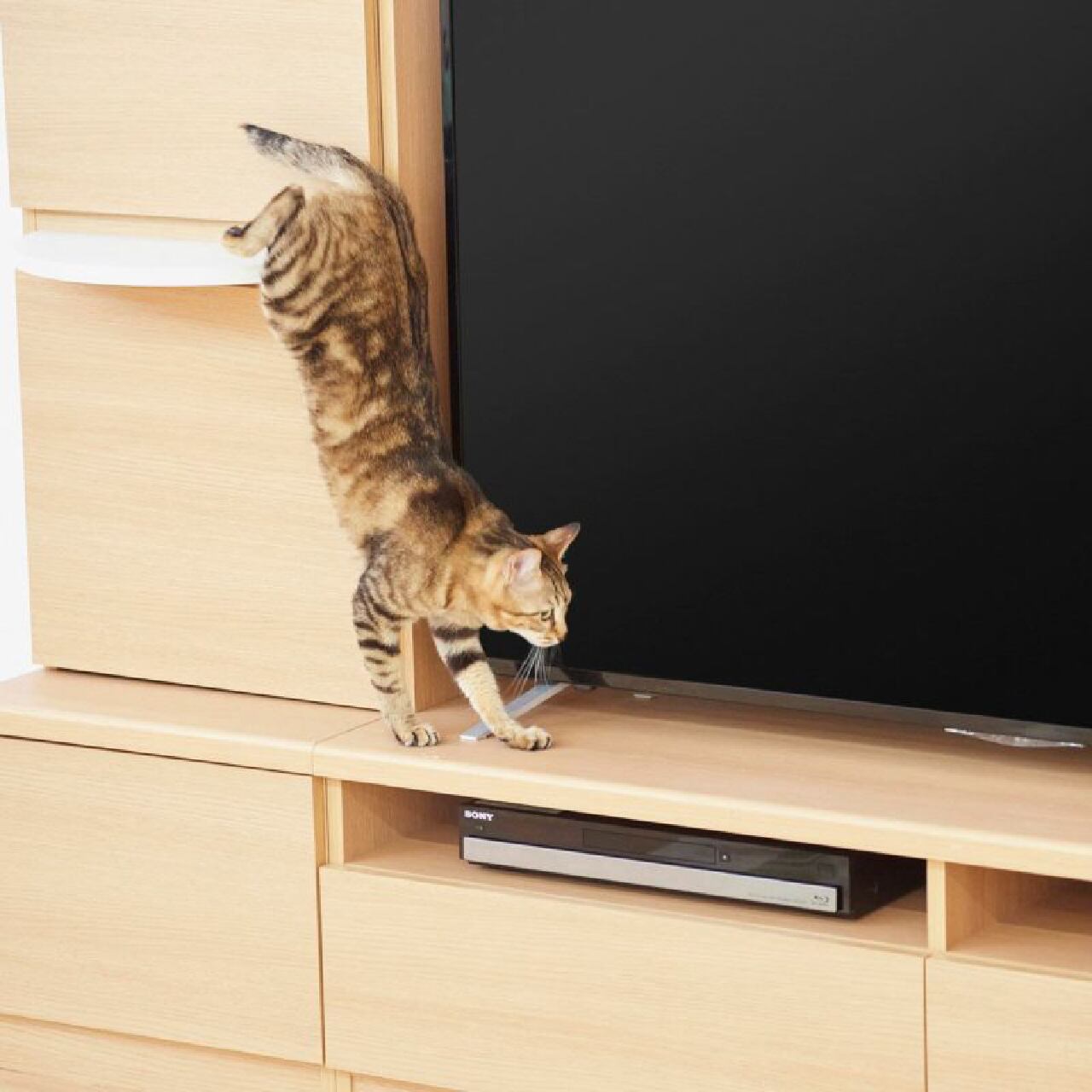 中棚と天板の好きなところにステップを取り付けられます。シリーズのアイテムと並べて使えば猫ちゃんが自由に登れるキャットタワーに!