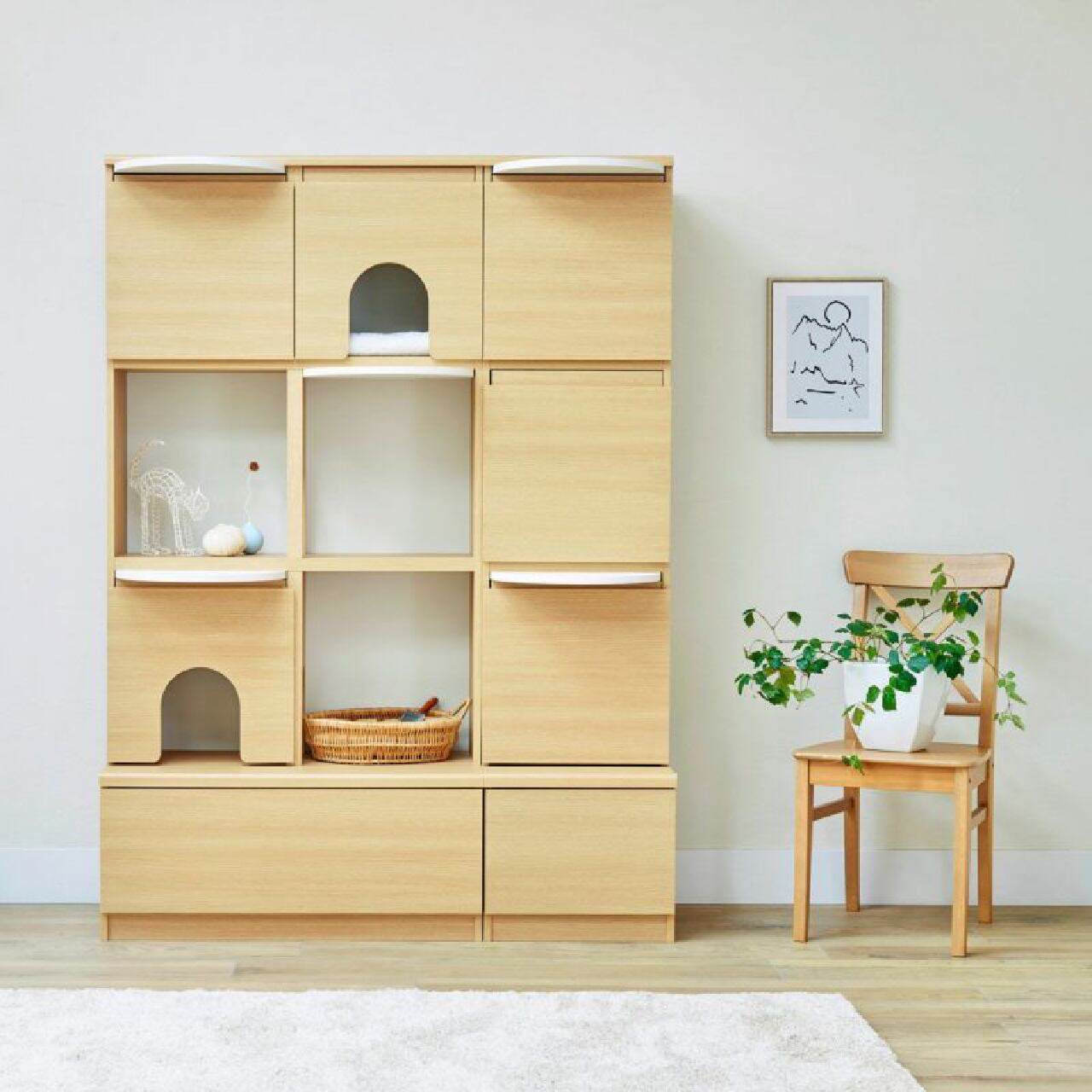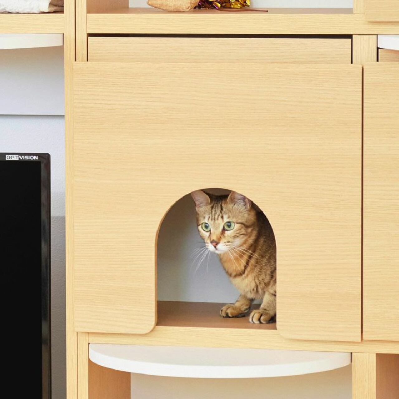 穴なし扉を横並びに2枚使えば、猫ちゃんが入れない収納スペースをつくることができます。フード・おもちゃなど猫ちゃんグッズはもちろん、大切なものも安心して収納しておけます。※画像はNCM-1845HNA