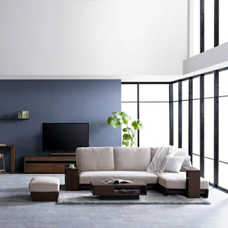 お部屋がすっきり広く見えるローソファ。厚みのあるウッドフレームが存在感を引き立てます。背面も飾り棚になっており、リビングの主役になれるソファです。