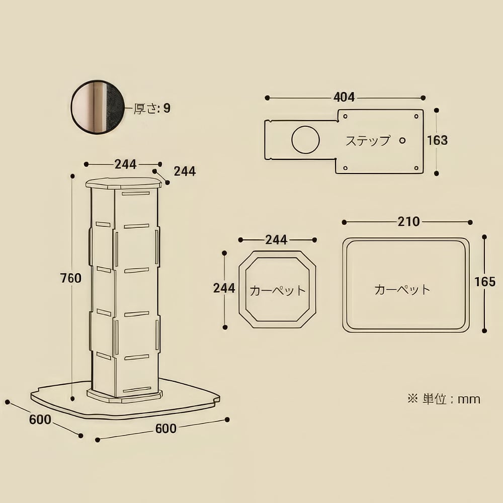 本体部/幅:244 × 奥行:244 × 高さ:760 [mm]