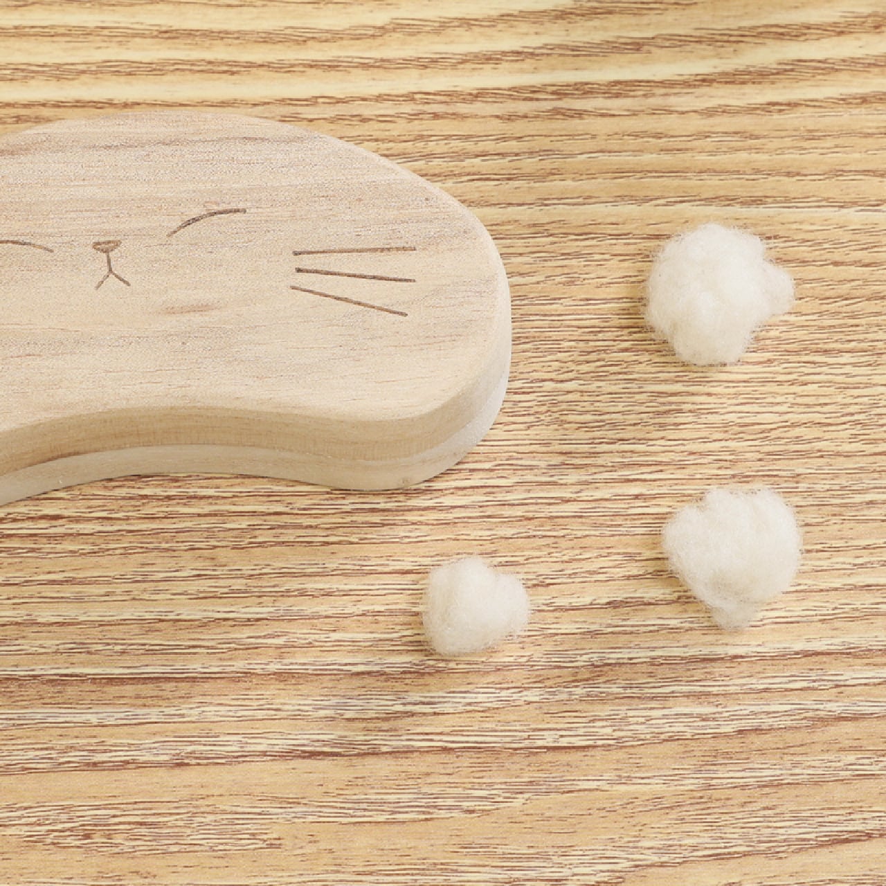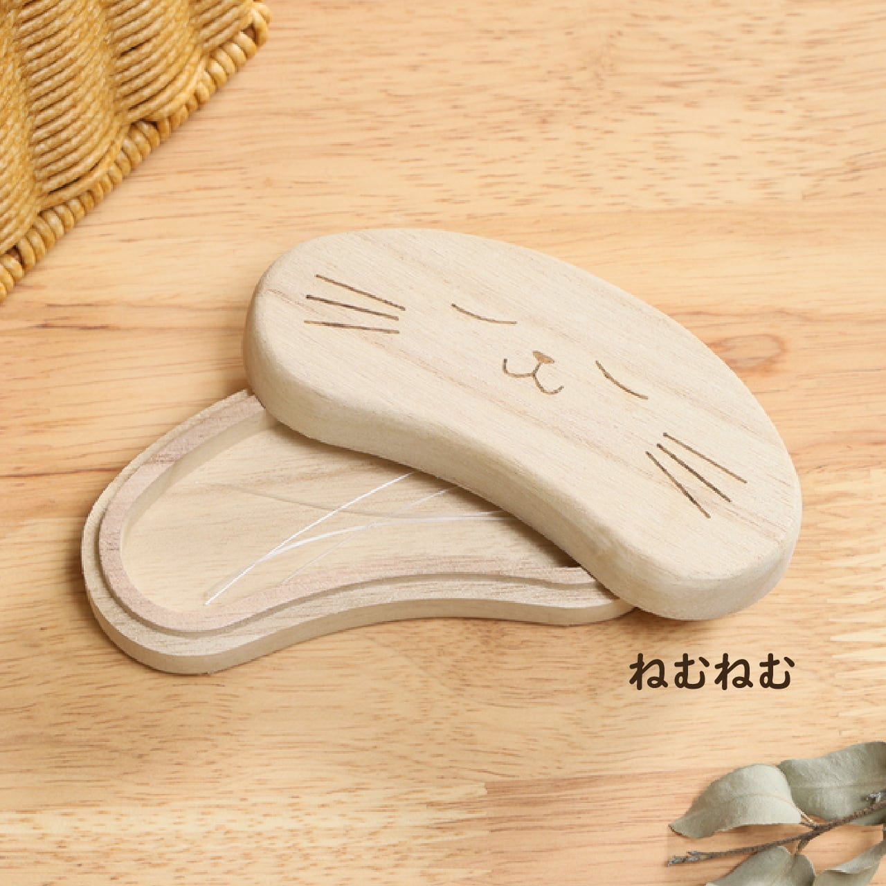 3. インテリアに馴染む「ビーンズ型」デザイン 猫のひげを連想させる、そら豆のような可愛らしいフォルムが特徴です。 デザインは、愛らしい表情の「きょとん」と、癒やしの表情「ねむねむ」の2種類をご用意しました。机の上やタンスの引き出しに置いても、インテリアの邪魔をせず、空間に温かみを添えてくれます。