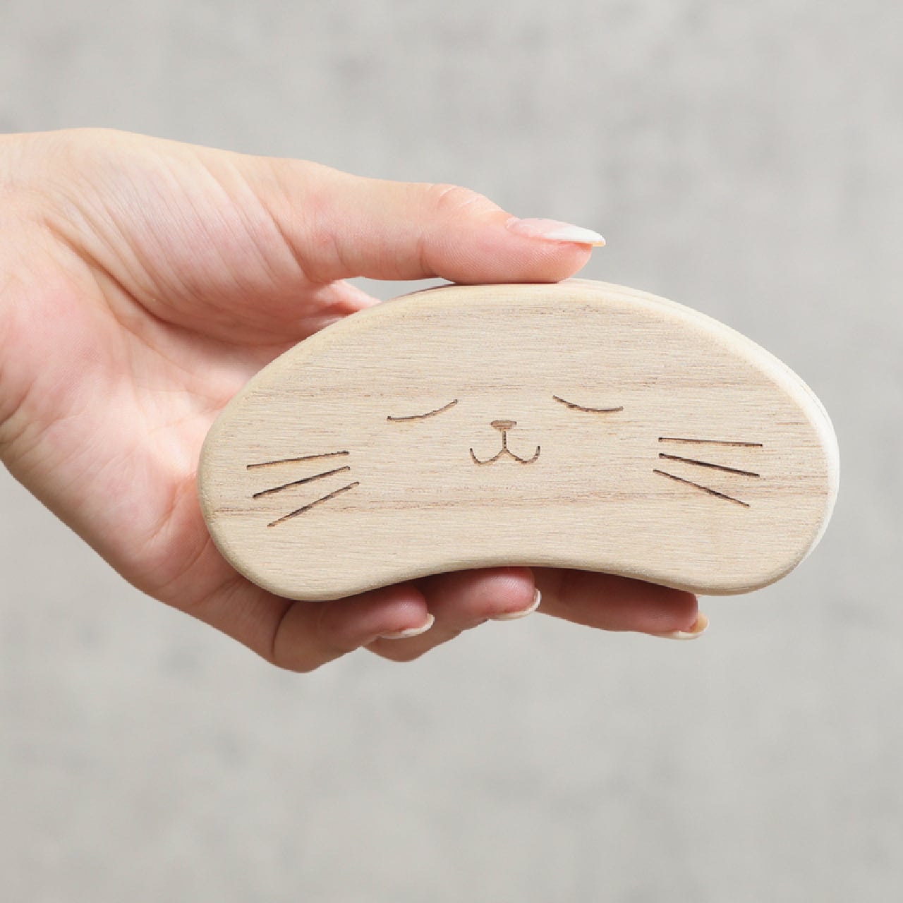 【猫のひげケース】桐製で長期保管も安心|ビーンズ型(きょとん/ねむねむ)|抜けたひげは縁起物・お守りに